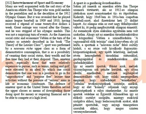 A gazdaság szerepe című fejezet Schmitt dolgozatában megegyezik Klaus Heinemann The Economics of Sport: the Institution of Modern Sport as an Area of Economic Competition címmel megjelent tanulmányának szövegével. Heinemann szövege eredetileg egy 1990 májusában Kanadában megtartott nemzetközi konferencián hangzott el, melynek előadásai Sport… The Third Millennium: Proceedings of the International Symposium, Quebec City, Canada, May 21-25, 1990 című, több mint 800 oldalas kötetben jelentek meg 1991-ben.