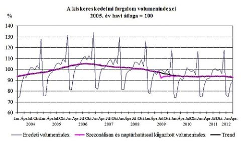 Rég nem látott tempóban csökkent áprilisban a hazai kiskereskedelmi forgalom volumene. Éves összevetésben 2,7, havi szinten 1 százalék volt a mínusz, ami az elmúlt szűk másfél év leggyorsabb szűkülését jelenti. A visszaesés szinte minden szegmenst érint, a lejtmenetben az élelmiszer- és élelmiszer jellegű vegyes üzletek, az üzemanyagtöltő állomások, valamint a bútor- és műszakicikk-üzletek forgalomcsökkenése volt a meghatározó. A netes csatorna viszont bővült.
