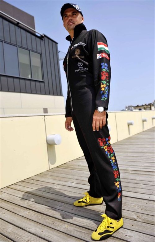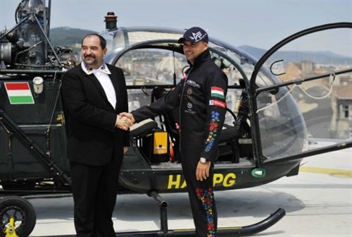 Kalocsai mintás overallt kapott Nádas Tamás Európa-bajnok, négyszeres magyar bajnok műrepülő-pilóta. A különleges felszerelést Török Ferenc, Kalocsa város polgármestere adta át a pilótának, aki helikopterrel érkezett a hétfői budapesti sajtótájékoztató helyszínére.