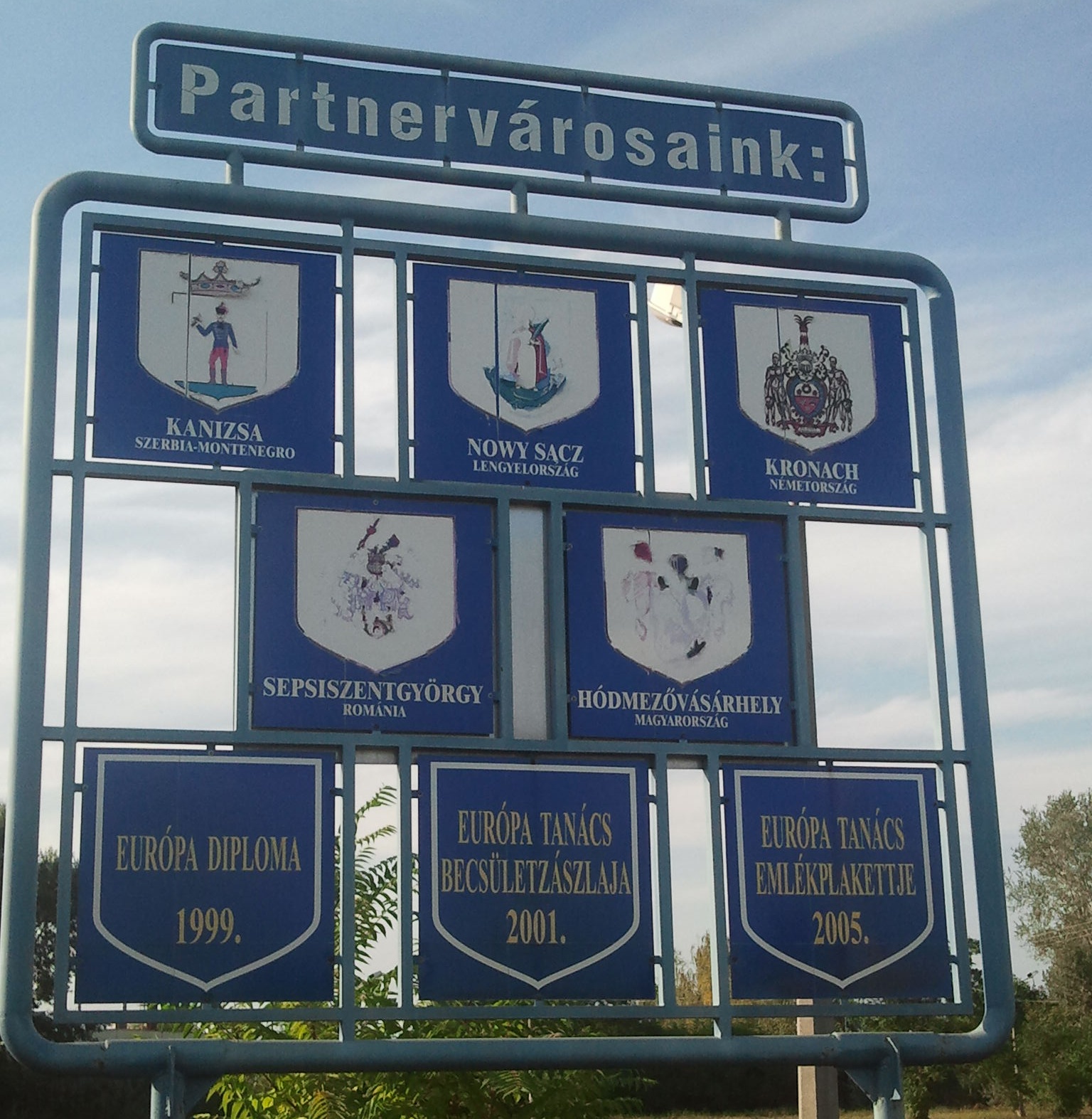 Egy számunkra sértő hiányosságra szeretném felhívni a figyelmet, amelyre Kiskunhalason lettünk figyelmesek. Egy hete Kiskunmajsára mentünk fürdeni a barátaimmal, és Kiskunhalas bejáratánál áll egy köszöntő tábla, amelyre fel vannak rakva a város testvértelepülései, többek között "Kanizsa" város is.
