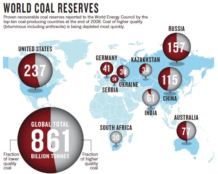 A világ széntérképe: a szén a legolcsóbb áramtermelő forrás a vízenergia mellett. Európa már nem tudja a szénkészleteire alapozva évtizedekig biztosítani energiaellátását, ha szénerőművekkel akarná ellátni magát, akkor egyre nagyobb importra szorulna, amivel az ausztrál és dél-afrikai költségvetésnek okozna egyre nagyobb többletet. A gáz pedig leginkább az oroszoknál és a Közel-Keleten van. Így a nyugat-európai országok számára a nem fosszilis források támogatása akkor is megérheti, ha drágább lesz vele az áram, ugyanis a jövedelem visszakerülhet a saját iparukba, míg az importszénnel másokat tartanak el