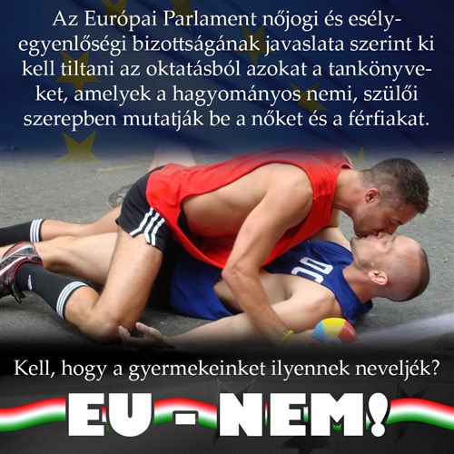Tavaly megjelent egy kicsit terjedelmesebb cikkem az eurokolhoz (EU) újabb agymenéséről, melyben arról is írtam, hogy mennyire fontosnak tartom a nyugat Szovjetuniója elleni tömegtájékoztatást. Néhány helyen látni szoktam a jól ismert "EU - NEM!" feliratú matricákat. Erről az a véleményem, hogy - bár tiszteletet érdemlő maga a kezdeményezés - gyakorlatilag hatástalan. Ezzel annyit mondunk el annak, aki látja a matricát, hogy "Az EU rossz!". "Miért?" - teheti fel a jogos kérdést. Ha belegondolunk, az ellenoldal EU-propagandája folyamatosan ad érveket, reklámoz, hirdet, dicsér, hogy a tömeg nyugodt legyen. És annak ellenére, hogy ezek az EU mellett kiálló beszédek, kampányfilmek, cikkek és hasonlók rettentően felületesek, bugyuták, hazugak, és főként egyoldalúak, mégis alátámasztják az üzenetüket valamivel. A többségnek ez bőven elég. Mi, akik a hazug EU-propagandát szeretnénk ellensúlyozni, ráadásul jó szándékból, önzetlenül, még ennyit sem nyújtunk. Ennek semmi értelme. Szükséges tehát stratégiánk megváltoztatása, érvelni kell! Mégpedig olyan érvekkel, melyek a valóság bemutatásával felkeltik a figyelmet, és arra sarkallják a tömegeket, hogy nézzenek körül saját környezetükben, és ha csak a saját szintjükön, módjukon is, de nézzenek a díszes függöny mögé, és lássák meg a mögötte tornyosuló trágyahalmot, melynek szagát egy kicsit már előtte is érezték! Kérdezzék meg rokonaik, ismerőseik véleményét, lássák meg, hogy ez az egyre undorítóbb államszövetség mennyire súlyosan érinti szűkebb környezetüket is!