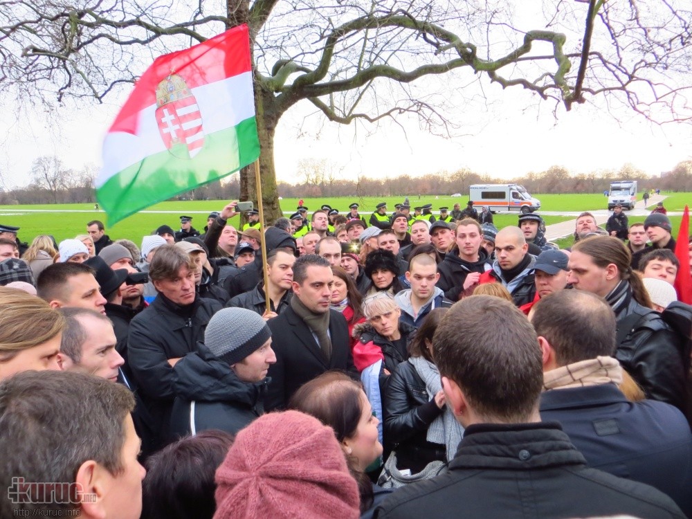 Már a legelső pillanattól értetlenül álltunk az előtt, hogy kik ezek a hangoskodó szerencsétlen emberek, akik kb. semennyit sem tudhatnak Magyarországról, a Jobbikról, a rendezvényre érkező, Angliában élő magyarokról, de nem volt jobb dolguk, mint idejönni hőzöngeni. Becsületes munka mellett Angliában élő magyarként én személy szerint igen sérelmeztem, hogy ilyesfajta csőcselék skandálása fogad - Londonban.