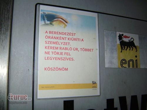 A mellékelt fényképeket az óbudai Agip benzinkút önkiszolgáló, pénzbedobós kézi mosójánál készítettem. Megcáfolhatatlan bizonyítéka annak, hogy Magyarország jobban teljesít, és a pintéri rend képes hatékonyan megvédeni a lakosságot és a cégeket a bűnözők ellen...