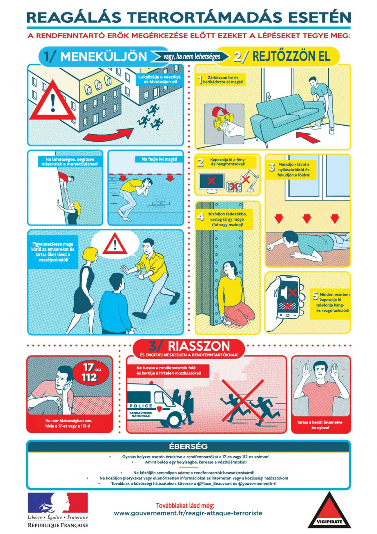 Meneküljön, vagy, ha nem lehetséges, rejtőzzön el! Riasszon és engedelmeskedjen a rendfenntartóknak!