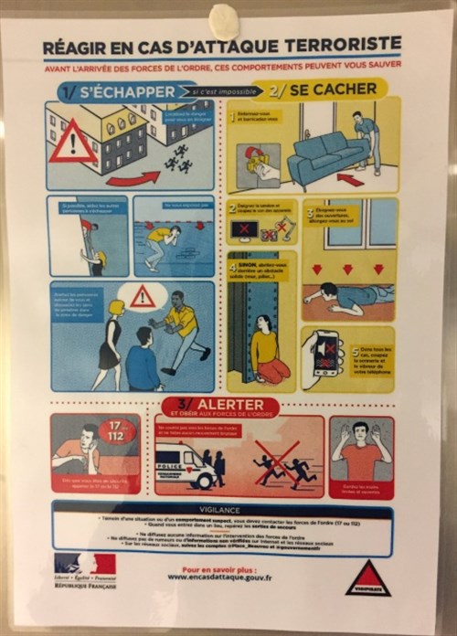 Az alábbi plakátot már több helyen láttam Franciaországban koncertek helyszínén, ezt múlt héten csütörtökön készítettem Lyonban, a Jean-Michel Jarre-koncert helyszínének öltöző/iroda-folyosóin. Szóval még mindig nem úgy tűnik, hogy a "szemét eltakarításával" foglalkoznának, inkább azt akarják megmondani, mit tegyünk "szemetelés" esetén... - írja az alábbi fényképet és fordítást beküldő olvasónk.