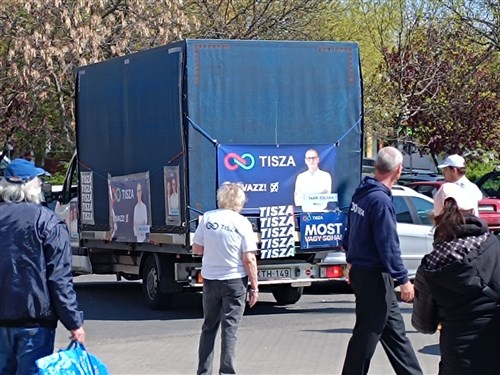 Jót nevettünk a Budapest 9. választókerület önkénteseivel és a Mi Hazánk országgyűlési képviselőjelöltjével szombaton, amikor megjelent Csepelen a Görgey Artúr téren a tiszások ponyvás teherautója.