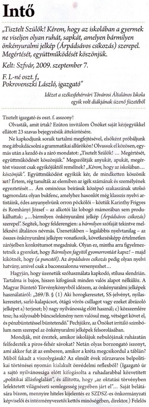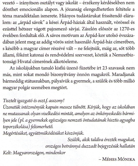 - Igazgatók, tanárok és diákok figyelmébe: nem tiltható meg nemzeti jelképeink iskolában való viselése!