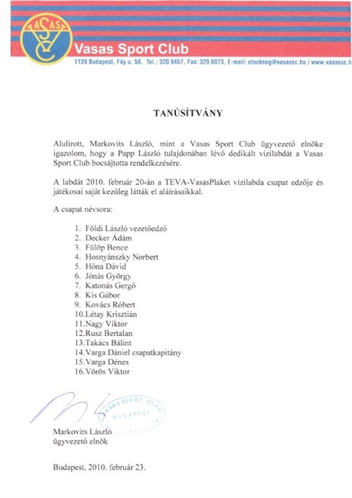 Kuruc.info: A labdára itt lehet licitálni: http://licitbazar.hu/VASAS-vizilabdacsapat-dedikalt-labdaja-115647.html
