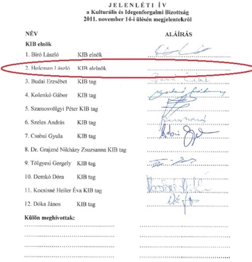 Egyrészt hiába mondja azt a megyei elnökség, hogy Holcman László minden ülésen jelen volt. Nem mondanak igazat, ezt jegyzőkönyvhöz csatolt jelenléti ív bizonyítja: