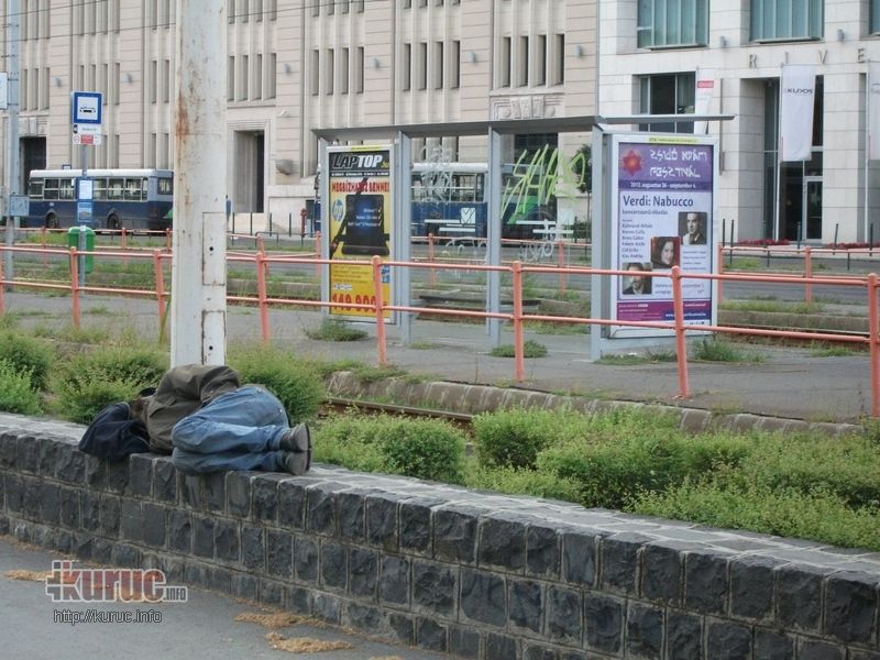 A képek azért beszédesek, mert a kamatgyarmat fővárosában alvó hajléktalan bennszülött hátterében egy mára már sajnos nem is szokatlan, az adófizetők pénzéből is bőven támogatott rendezvény plakátja látható.