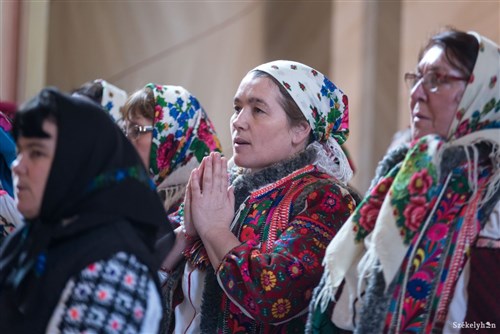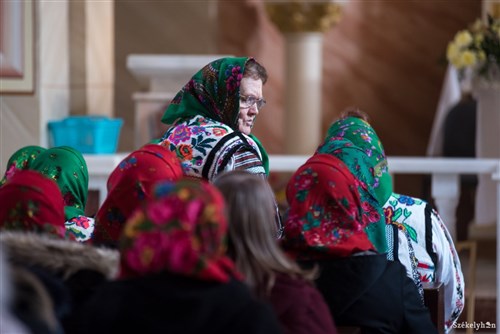 Nyisztor Tinka elmondta, igazi ünnepi hangulat uralkodott a templomban, amit az is jelzett, hogy hat-nyolc csángó faluból népviseletbe öltözve érkezett a hívek egy-egy csoportja. Hozzátette, az első magyar misét egyórás szentségimádás előzte meg, és már erre is majdnem megtelt a templom. A szentségimádás során többek között a keresztúti áhítatosságot imádkozták, amelynek minden stációja után egy-egy magyar éneket énekeltek el. „Olyan tiszta szívből énekelt mindenki, és olyan szakralitása volt az egésznek, hogy érezni lehetett az erőt, ami a közösségben van” – mondta Nyisztor Tinka, aki szerint a jelenlévők többsége tudta a magyar énekeket, és felszabadultan énekelt.
