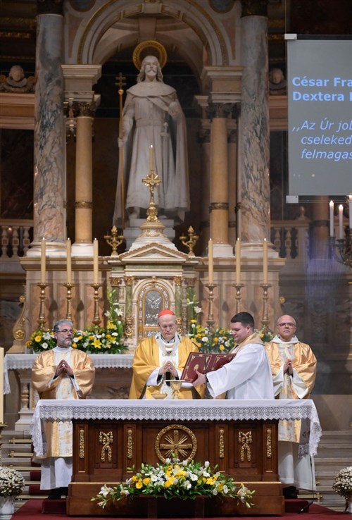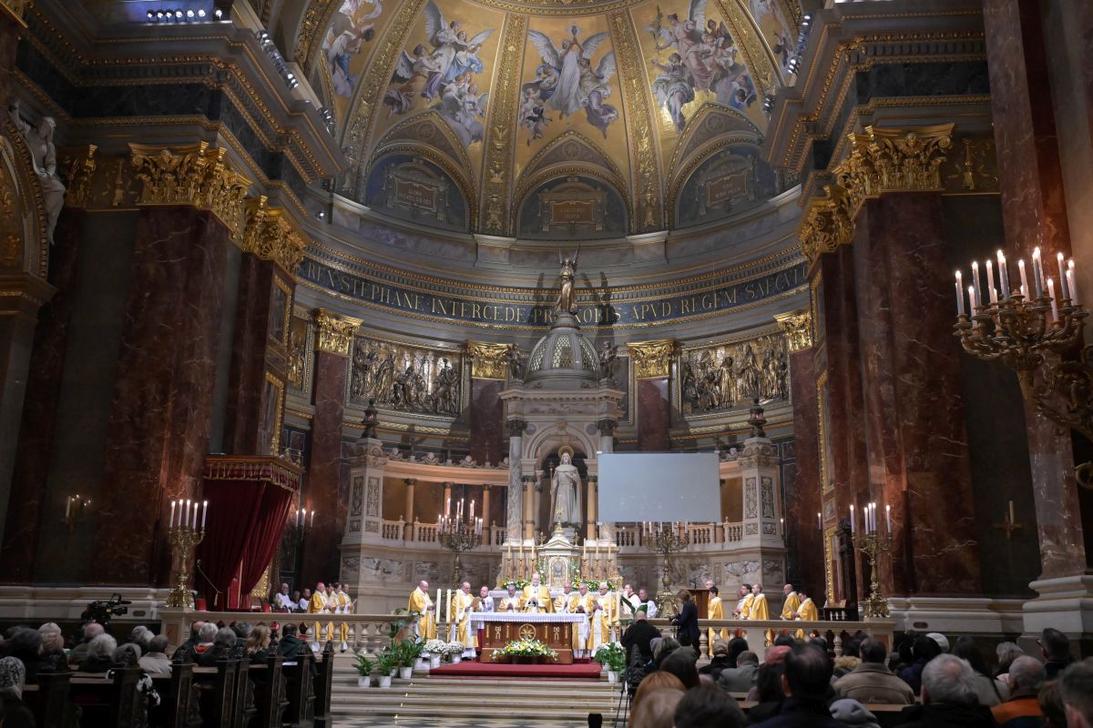 Kitért arra: a bazilika védőszentje Szent István király, aki az egész magyar nép pártfogója, és "különös kegyelem", hogy a templomban őrzik a Szent Jobbot.