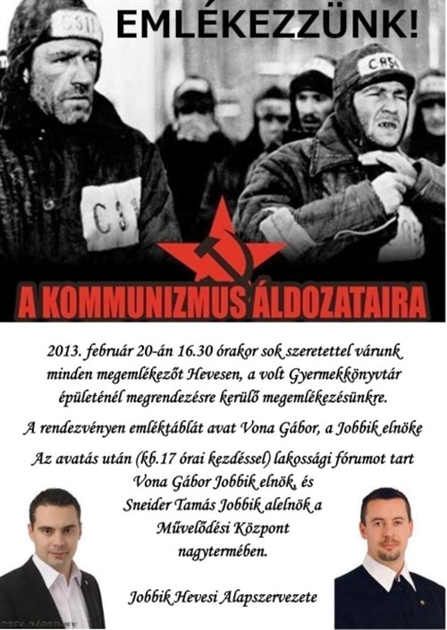 A kommunizmus áldozataira emlékeznek - Vona Gábor és Sneider Tamás Hevesen