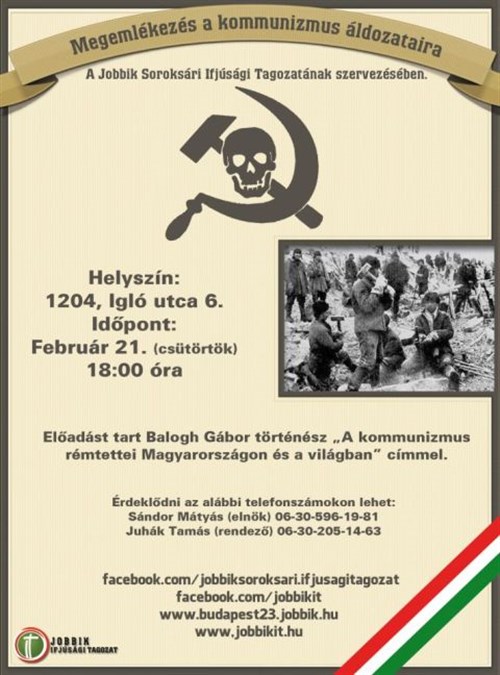 A kommunizmus áldozatairól emlékeznek meg a soroksári Jobbik IT-sek