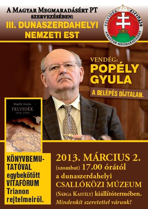 A III. Dunaszerdahelyi Nemzeti Est vendége Popély Gyula