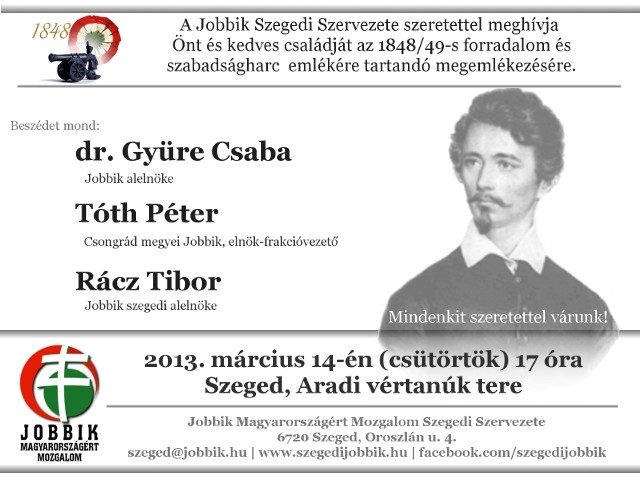 "Ezúton értesítjük Önöket, hogy az előzetesen meghirdetett rendezvényünket, a rossz időjárási körülmények miatt, a Jobbik Szegedi Szervezetének Székházában tartjuk 17.00-tól!"
