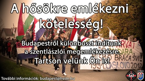 Tavaly szerveztük meg először a felvonulást a horvátországi Szentlászlón horvát bajtársainkkal együtt. Azokra a magyar, horvát (és más nemzetiségű) hősökre emlékezünk, akik 22 évvel ezelőtt fegyverrel védték a hatalmas szerb-jugoszláv túlerővel szemben ezt az Árpád-kori, ősi magyar falut ott Szlavóniában. A rendkívül megható tavalyi megemlékezésen sírva fogadtak minket a szentlászlói idős magyarok.