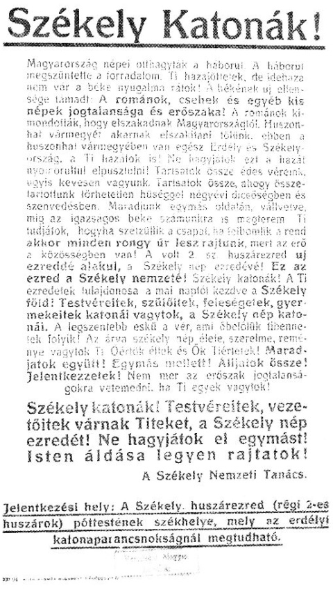 - 90 éve alakult meg a Székely hadosztály, az SZNT és született meg az önálló köztársaság gondolata