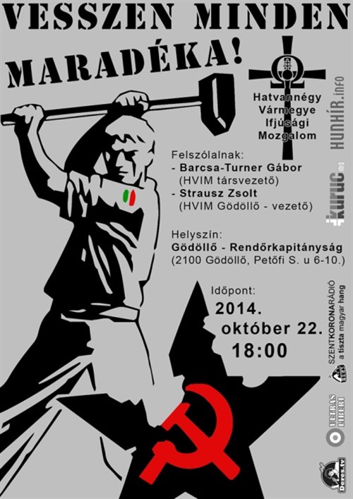 Szervezetünk, a Hatvannégy Vármegye Ifjúsági Mozgalom (HVIM) nemrég egy megemlékezéssel egybekötött tiltakozó demonstrációra hívta Gödöllő lakosságát és a nemzeti oldalt, hogy közösen hajtsanak főt 1956-os szabadságharcosaink hőstettei előtt, illetve felemeljék a szavuk az ellen a gyalázatos tény ellen, hogy a helyi rendőrkapitányság épületén a mai napig látható a szovjet gyilkosok szimbóluma.