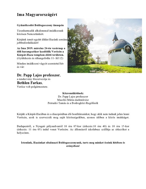 Ima Magyarországért Gyümölcsoltó Boldogasszony ünnepén