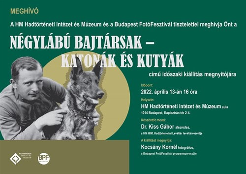 "Négylábú bajtársak - katonák és kutyák" címmel új időszaki kül- és beltéri fotókiállítás nyílt Budapesten, a Hadtörténeti Intézet és Múzeumban.