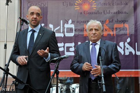 Kovács Zoltánnak (a bal oldali zsidó) nem nagy kunszt fajtársi szervezetekkel haverkodni. (A 2011. augusztus 28-án készült képen még kormányzati kommunikációért felelős államtitkárként mond beszédet a 14. Zsidó Nyári Fesztivál megnyitóján, a Gozsdu-udvarban. Jobbról Zoltai Gusztáv expufajkás, Lázár drága kitartottja)