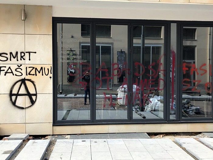 Szombaton éjszaka ismeretlen tettesek megrongálták a Magyarország belgrádi nagykövetségének helyet adó Collegium Hungaricum épületét.