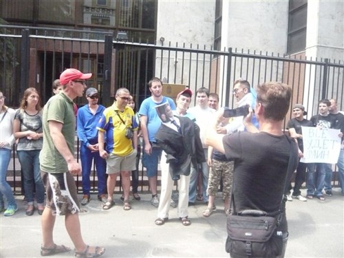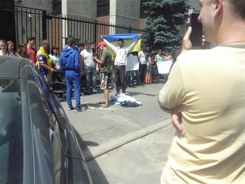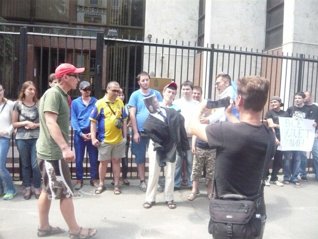A kijevi magyar nagykövetség előtt tüntetett néhány tucatnyi magyargyűlölő a budapesti kormány "Ukrajnával szembeni barátságtalan politikája ellen".
