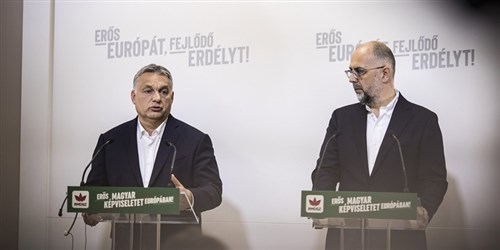 A miniszterelnök arra biztatta szerdán a "romániai" magyarokat, hogy a Romániai Magyar Demokrata Szövetség (RMDSZ) listájára szavazzanak a közelgő európai parlamenti (EP-) választáson. Orbán Viktor a Kelemen Hunorral, az RMDSZ elnökével Kolozsváron tartott közös sajtótájékoztatón hangsúlyozta: azoknak a magyaroknak, akik az összmagyar brüsszeli képviseletet szeretnék erősíteni, hogy ott erős hangja legyen a magyarságnak, Romániában az RMDSZ-re kell szavazniuk.