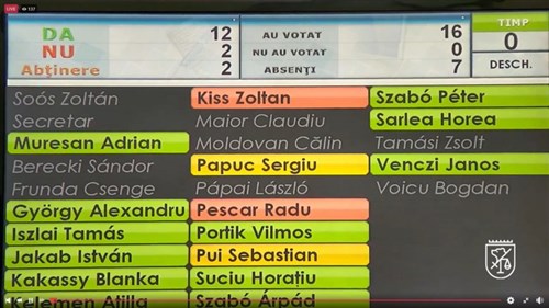 A 23 tagú önkormányzati testületben 15-en szavaztak a határozat elfogadására. A Romániai Magyar Demokrata Szövetség (RMDSZ) képviselői mellett a Nemzeti Liberális Párt (PNL) és a Szabad Emberek Pártja (POL) képviselői támogatták a város jegyzője által is kedvezően véleményezett határozatot. A Pro Románia Párt és a Népi Mozgalom Párt képviselői a jogi bizottság negatív véleményezésére hivatkozva a döntés elhalasztását kezdeményezték. Az ülést élőben közvetítették a városháza közösségi oldalán.