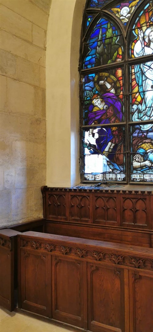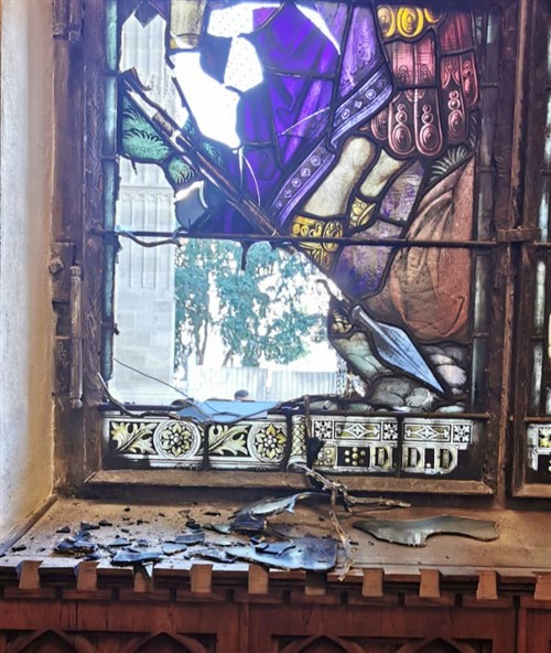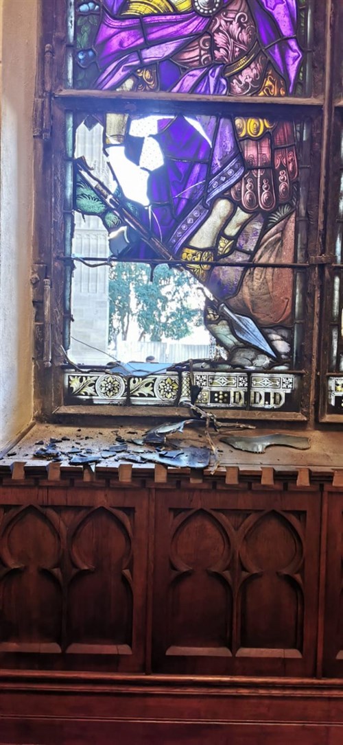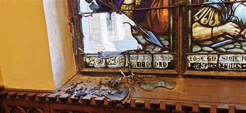 Miután tegnap az egyik perselyt lopta el egy ,,élelmes” tolvaj, ma reggelre sokkal szomorúbb látványra ébredt Kolozsvár: a torony alatti egyik festett üvegablakot vasrúddal törték össze annak reményében, hogy ott bejutva tovább rabolhatnak.