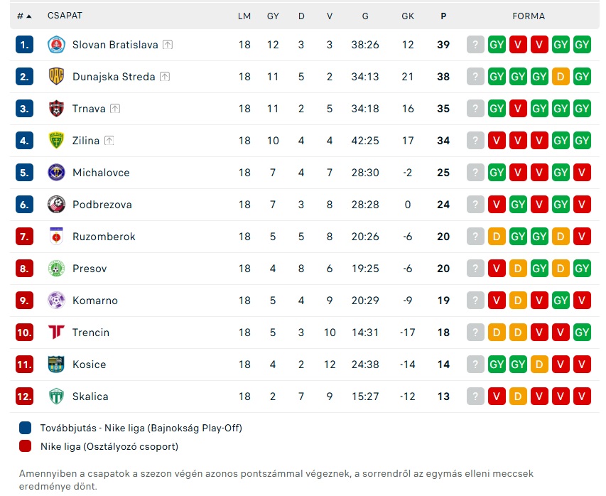 A Niké Liga jelenlegi állása (fotó: eredmenyek.com)