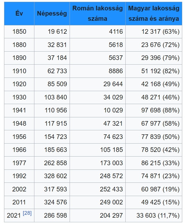 A "lovak nyelve" és a történelem: Kolozsvár etnikai összetétele a népszámlálások szerint - a kommunista oláhbetelepítés adta meg a végső döfést (forrás: Wikipédia)
