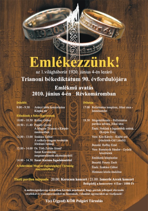 Az emlékoszlopot a tervek szerint június 4-én avatnák fel a református egyház kollégiumának udvarán, tehát nem közterületen. Korábban mind az MKP, mind a Híd vezetője úgy nyilatkozott, a választásokra való tekintettel az átadást jobb lenne elhalasztani pár nappal.