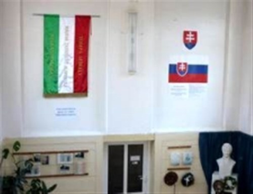 A rimaszombati Tompa Mihály<br>Általános Iskolában egy szép nagy<br>magyar zászlót is kifüggesztettek