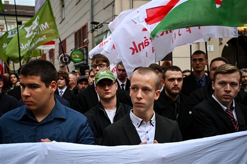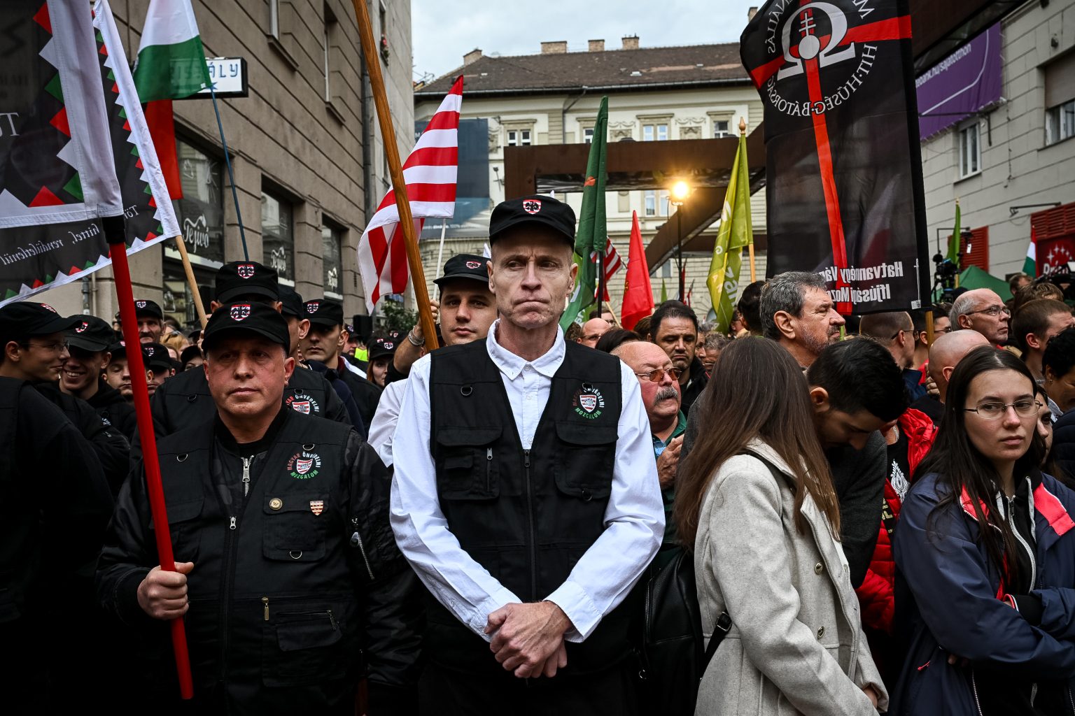 „A piti bűnözőktől a fehérgallérosokig mindenkit börtönbe juttatunk! Nemre, vallásra tekintet nélkül minden bűnözőre lecsapunk!” – hangoztatta Toroczkai László, üdvrivalgást kiváltva a szakadó esőben is kitartó hallgatóságból.