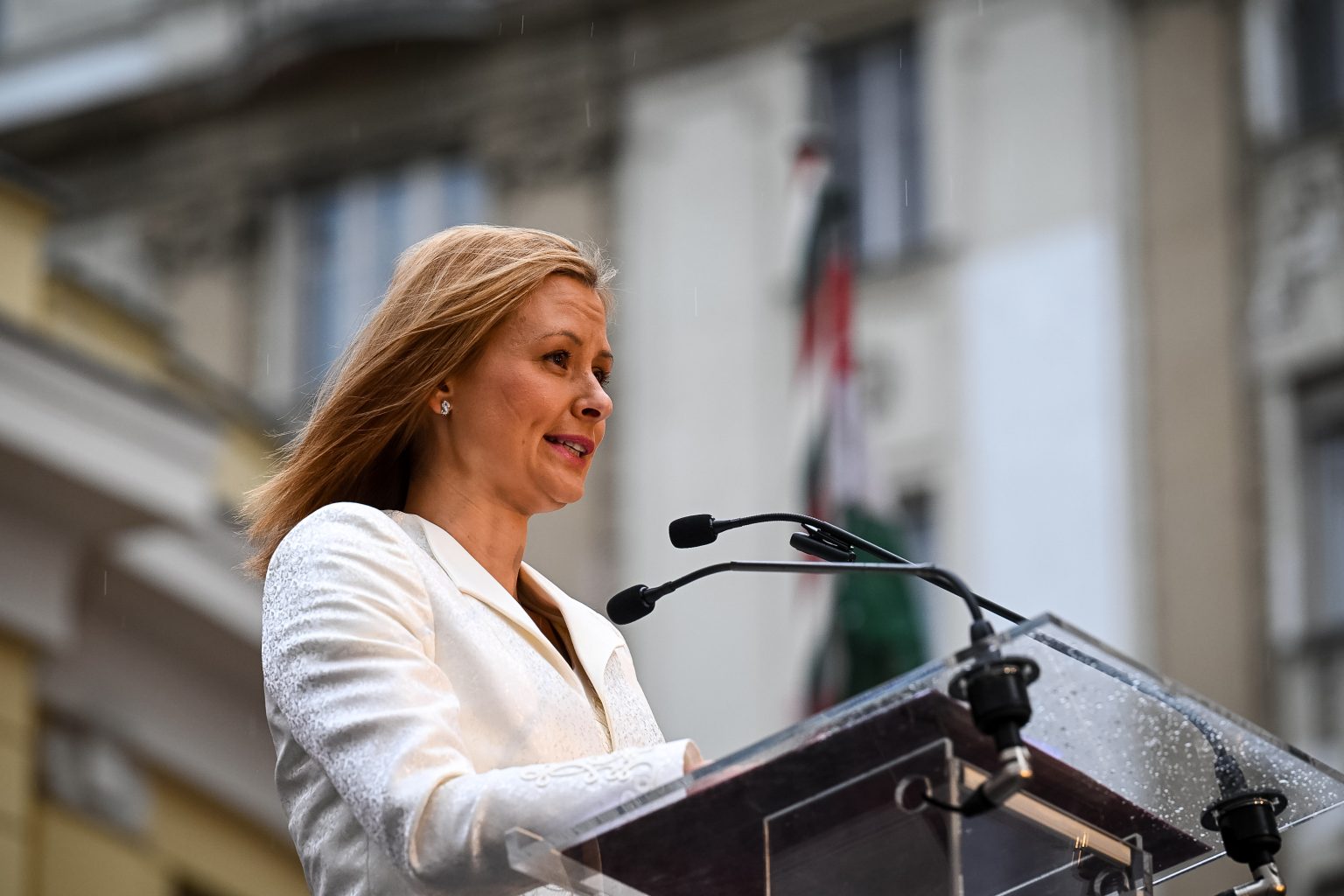 A vármegyés vezető után Dúró Dóra, az Országgyűlés alelnöke, a Mi Hazánk elnökhelyettese mondta el október 23-i beszédét. A politikus az előtte szólókhoz hasonlóan méltatta az '56-os hősöket, „akiknek minden pillanatban szembe kellett nézniük a halállal”.