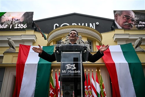 Dúró Dóra, a párt elnökhelyettese - mielőtt bemutatta volna az egyéni választókerületekben indítani kívánt 106 politikusukat - példaként állította hallgatósága elé az 1956-os pesti srácokat, hangsúlyozva: ők olyan helyzetben vállalták fel a szabadságért folytatott küzdelmet, amikor minden bizonytalan volt, csak a túlerő nem.