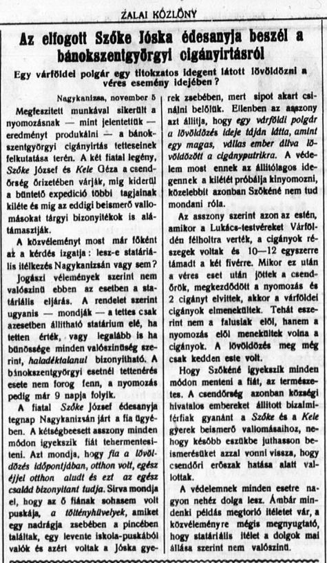 Mindenképpen rosszallást vált ki az emberből az akasztófáravalók megleckéztetőivel szembeni indokolatlan és aránytalan szigorúság, mégis jóleső érzés olvasni, hogy volt idő, amikor még szembe mert szállni a lakosság egy része a lincselő cigányhordával. A Zalai Közlöny újságcikke (sajnos) 1931-ből származik, köszönet érte olvasónknak.