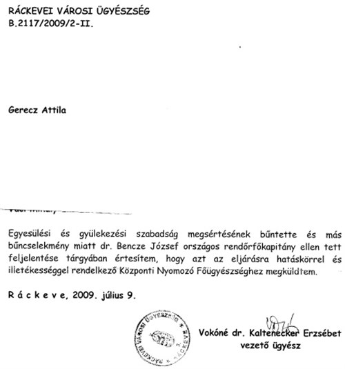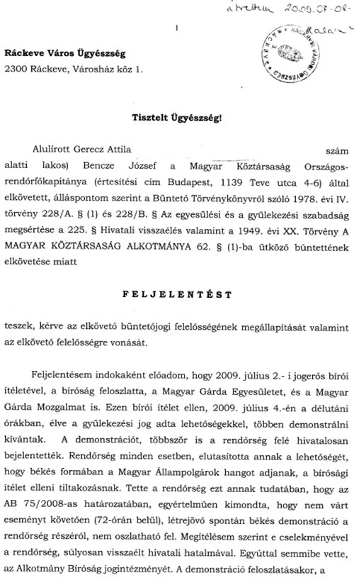 Olvasónk feljelentette Benczét; megküldve a Központi Nyomozó Főügyészségnek