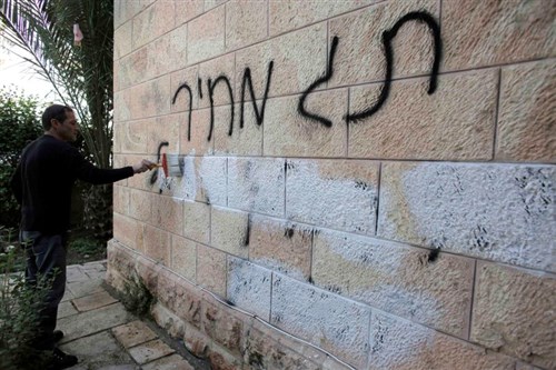 Az elmúlt hét végén közben több újabb keresztényellenes zsidó gyűlöletcselekedetekre került sor. A jeruzsálemi óváros Új Kapujával szemben álló Notre Dame Jeruzsálem Központ nevű épületegyüttes falára héberül fölírták: "Halál az arabokra, a keresztényekre és Izrael minden gyűlölőjére!". Jeruzsálem óvárosában egy keresztény templom közelében álló falon pedig a következő üzenetet hagyták a kiválasztottak: "Árcédula. Dávid, a zsidók királya. Jézus trágya."