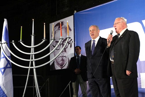 Rivlin (jobbról) itt még Bibivel hanukázik
