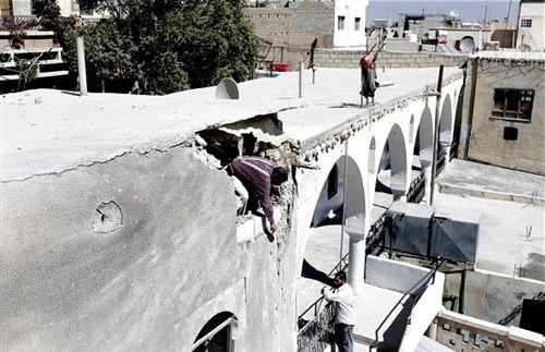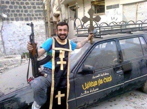 Jabrúdban épült Kr. u. 331-ben a világ egyik legősibb keresztény temploma, a Szent Konstantin és Szent Ilona katedrális. A szír ortodox (jakobita) keresztény egyház tulajdonában levő, értékes és megszentelt középkori kegyképekkel is díszített templomot és a tetején levő keresztet 2013 őszén a "szabadságharcosok" céltáblának használták, megszentségtelenítették, megrongálták, fölgyújtották, az apácákat, szerzeteseket túszként foglyul ejtették. Fényképünkön a Budapest által Szíria hiteles képviselőjeként elismert Szabad Szíriai Hadsereg egyik "szabadságharcosát" láthatjuk, amint a megszentségtelenített jabrúdi Szent Konstantin és Szent Ilona keresztény templom előtt a pap palástját magára terítve, lefeszített kereszttel a baljában pózol a fényképezőgép előtt. A terrorista rádől egy autóra, amelynek oldalán arabul a következő olvasható: "A Szír Ortodox Egyház Metropolitaságának Szent Mihály Bizottsága, halottszállító autó." Nos, ma hajnalban ezektől a hulladékoktól szabadították meg Basár el-Ászád katonái Jabrúd városát.