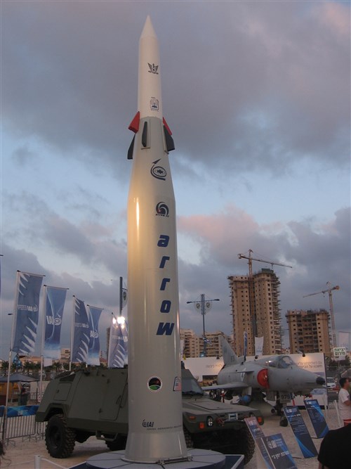 A Nyíl 2 rakétaelhárító rakéta a Rison Le-Cijon-i kiállításon