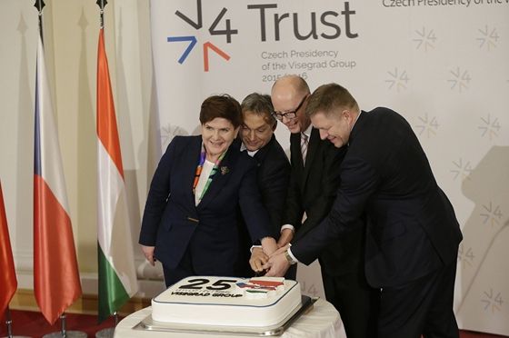 Erős, választóvonalak nélküli Európát szeretne a négy visegrádi ország, amelyek miniszterelnökei hétfőn Prágában közös nyilatkozatot fogadtak el a csoport megalakulásának 25. évfordulója alkalmából. Bohuslav Sobotka cseh, Beata Szydlo lengyel, Orbán Viktor magyar és Robert Fico szlovák kormányfő a Prágai Nyilatkozatban óvtak az esetleges választóvonalak kialakulásától az Európai Unióban és hangsúlyozták, hogy az EU-nak nyitottnak kell maradnia a tagság iránt érdeklődő országok számára. Az európai integráció elmélyítését alapvető kérdésnek nevezték.