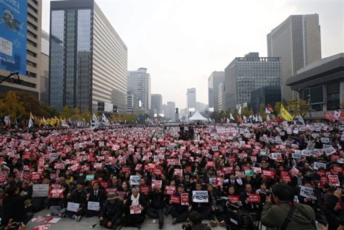 A rendőrség 45 ezer fősre becsülte a dél-koreai fővárosban összegyűlt tömeget, míg a tüntetéseket szervezők szerint mintegy 200 ezren vonultak utcára.