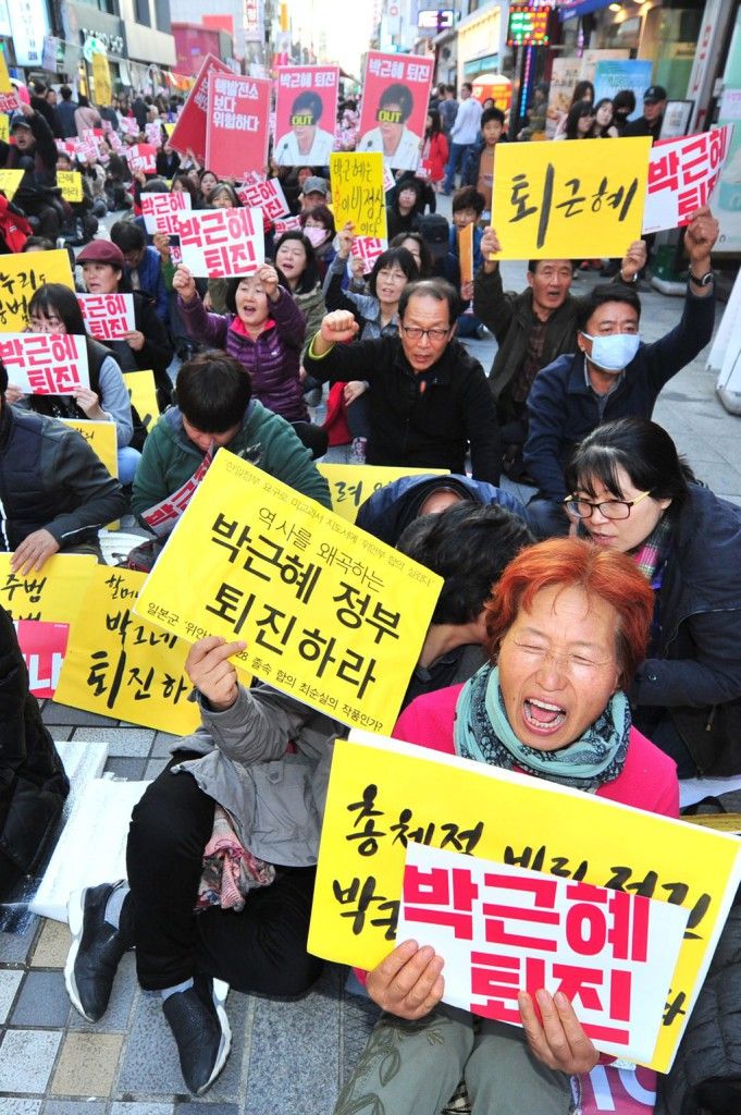 Pak Gun Hje lemondását – akinek népszerűsége az utóbbi hetekben a valaha demokratikusan megválasztott szöuli vezetők közül mindenkiénél alacsonyabbra, 5 százalékra esett vissza – egyre inkább sürgeti mind a közvélemény, mind a parlament. Sokak szerint a néhai Pak Csong Hi diktátor lánya, Dél-Korea első női államfője alkalmatlan az ország vezetésére.