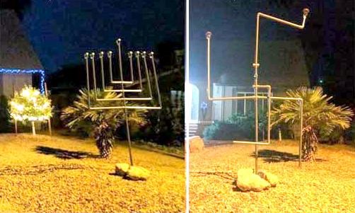 Az Arizona állambeli Chandler nevű városban a nyolc napig tartó hanukaünnep idején ismeretlenek az éjszaka leple alatt fémhajtogatással átalakítottak horogkeresztté egy utcára kitett méretes hanuka-gyertyatartót. A kárvallott Ellis házaspár a helybeli hírportálnak és televíziónak nyilatkozva elmondta, hogy a fémből készült hanuka-gyertyatartót (hánukijját) három kisebb gyermekük kérésére helyezték el az udvaruk előtti utcaszakaszon – tudósít az azfamily.com hírportál.