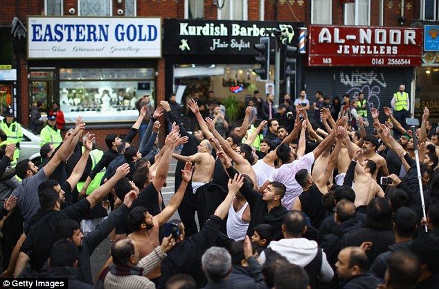 Ásúráünnep Manchester Rusholme nevű kerületében - ekkor szokták egyébként véresre vagdosni a fejüket a buzgó mohamedánok